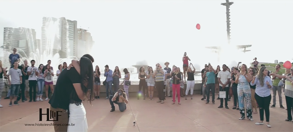 Ele pensou em cada detalhe da vida deles e fez um flash mob para pedir a mão da namorada. Veja