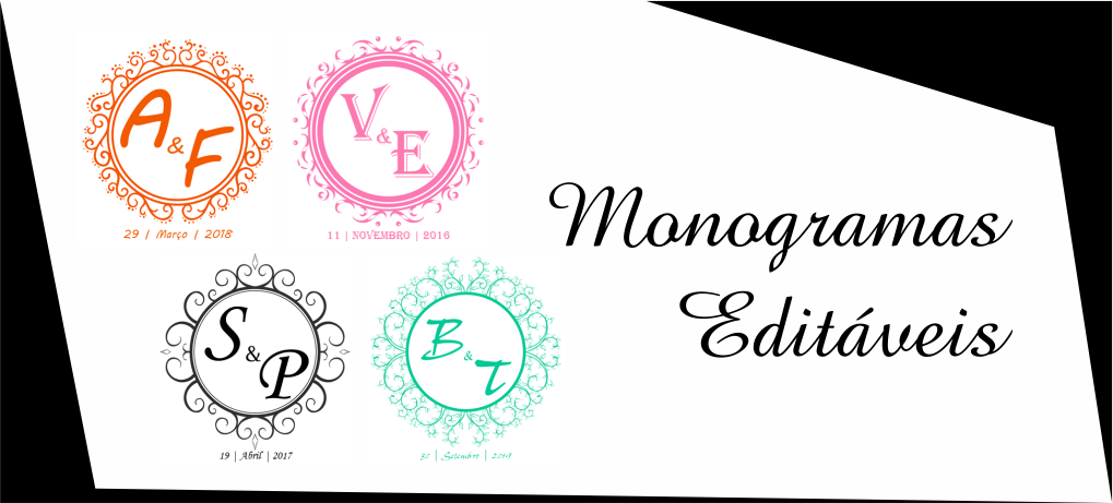 O monograma do casal é aplicado em convites, nas tags (etiquetas) que vão nas lembrancinhas, bem casados, docinhos e o
