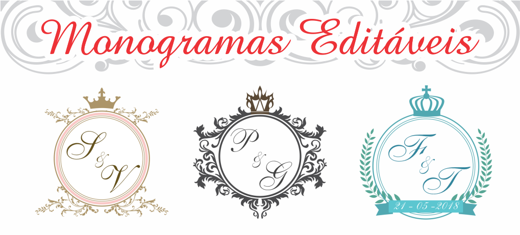 Monograma ImperialO monograma do casal é aplicado em convites, nas tags (etiquetas) que vão nas lembrancinhas, bem casados, docinhos e o que mais o casal quiser. E o nosso Monograma Editável Imperial é muito lindo!