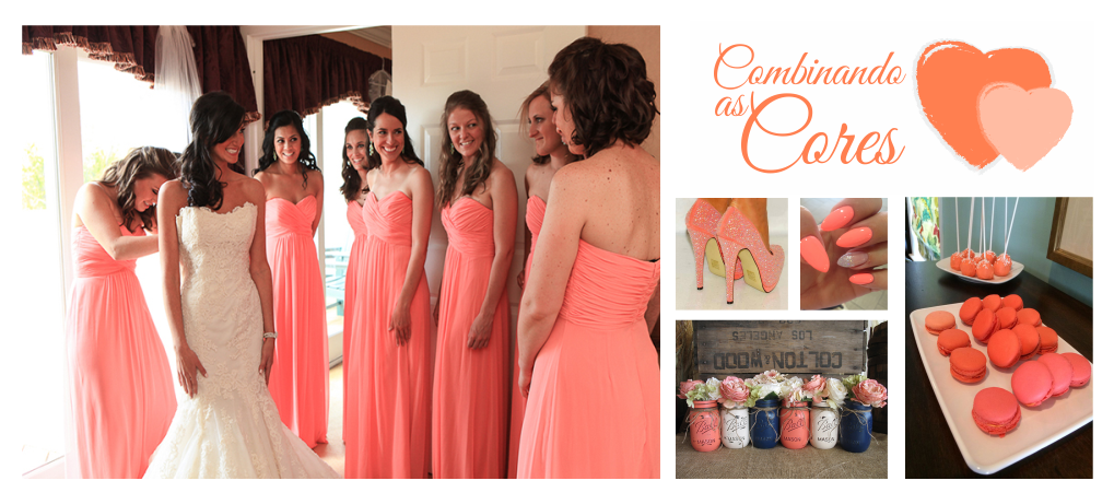 O coral quase foi uma das cores desse ano, já que foi uma das finalistas da pantone para definir a cor de 2016. Ela foi apresentada na versão Eco de Pêssego (um tom mais forte da cor), mas quem ganhou mesmo foi o rosa quartz e o azul serenity. Tudo bem, nós adoramos essa paleta mesmo assim e aqui você vai poder ver várias dicas para o seu casório.